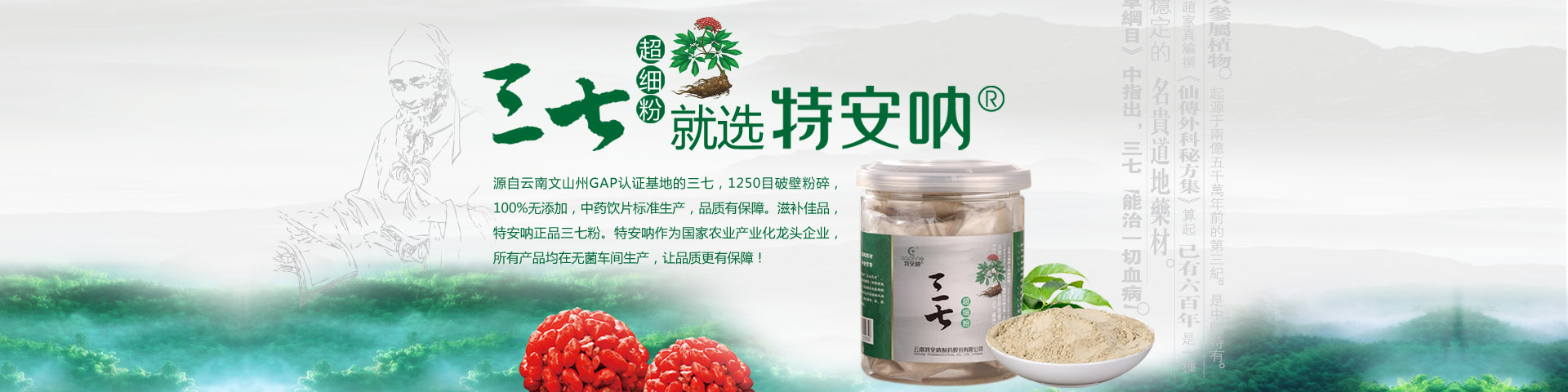 云南特安吶制藥股份有限公司(以下簡(jiǎn)稱“公司”)成立于1994年5月。2015年7月,云南省康旅控股集團(tuán)有限公司旗下的云南三七科技有限公司増資擴(kuò)股,公司成為立足文山、專注三七開發(fā)的國(guó)有控股企業(yè)。公司成立以來,緊緊依托文山得天獨(dú)厚的三七資源優(yōu)勢(shì),全力打造三七產(chǎn)業(yè)。經(jīng)過近30年的發(fā)展,公司構(gòu)建了以“產(chǎn)品研發(fā)基地、三七GAP種植基地、中藥材加工基地、產(chǎn)品生產(chǎn)基地、物流倉(cāng)儲(chǔ)基地”和“三七國(guó)際交易...